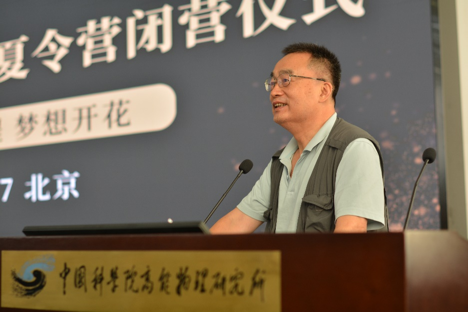 11日上午,高能所党委书记魏龙,所学位评定委员会主任常哲、实验物理中心副主任王铮、粒子天体物理中心副主任姚治国、多学科中心党总支书记王嘉鸥以及计算中心孙功星研究员等出席开营仪式。魏龙作开营致辞,他首先代表高能所欢迎各位营员参加此次夏令营,并介绍了高能所大科学装置的建设情况以及高能所开放、包容和国际化的科研环境。他希望营员们能够珍惜这次机会,感受大科学装置的魅力和科研氛围,为科研事业贡献自己的力量。营员代表李浩和研究生代表王逸丰分别发言,希望营员在夏令营活动中更好地了解高能所,保持开放学习的态度,增强领导力和团队合作精神,一起学习和成长,并呼吁大家将个人的理想与祖国的需要结合起来,为祖国基础研究的发展做出贡献。