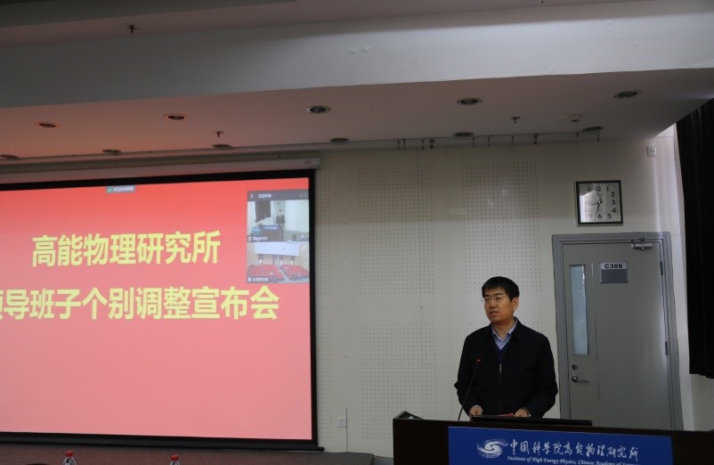 11月13日上午,高能所召开所领导班子个别调整宣布会,中国科学院人事局副局长蔡宏志出席会议。所党委书记魏龙主持会议。所领导班子成员、党委委员、纪委委员、支部书记、科研和管理骨干90余人参加会议。东莞研究部设立视频分会场。