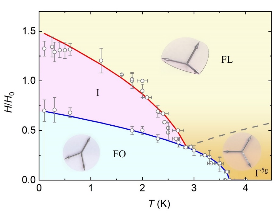 1. 基于横向和纵向电阻率测量而获得的磁场-温度磁结构相图