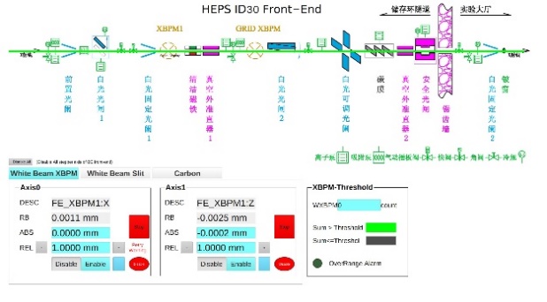 在系统研发过程中,线站控制系统得到了指挥部、束测控制部、光束线站部的协助和支持,与各线站、相关横向系统详细对接合作,对服务器、IOC主机、被控设备(如光阑、狭缝、准直镜、聚焦镜、荧光靶、单色器、XBPM和离子泵电源等)、各类接口、控制线缆以及连接器进行统一规划与部署,设计控制机箱,定制特殊设备,开发驱动程序,编写应用软件,设计三网(数据网、控制网和设备网)网络拓扑,完成了从单点到设备、从设备到系统、从独立控制到协调联动、从局部到整体的控制联调,成功建立了线站内部的信息流通道,所有数据存入数据库服务器并以人机交互操作界面向外展示,部分关键设备实现了反馈联动控制和参数的自动调节功能。