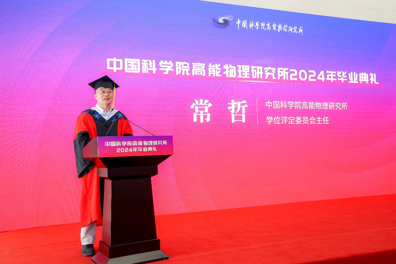 常哲在致辞中肯定了毕业生在学习生活中付出的努力和对高能所科研事业做出的重要贡献,对毕业生取得的学术研究成果表示衷心祝贺,希望大家在自己的领域中继续奋斗,为科学研究的进步贡献自己的力量,祝愿毕业生们工作顺利,生活幸福。