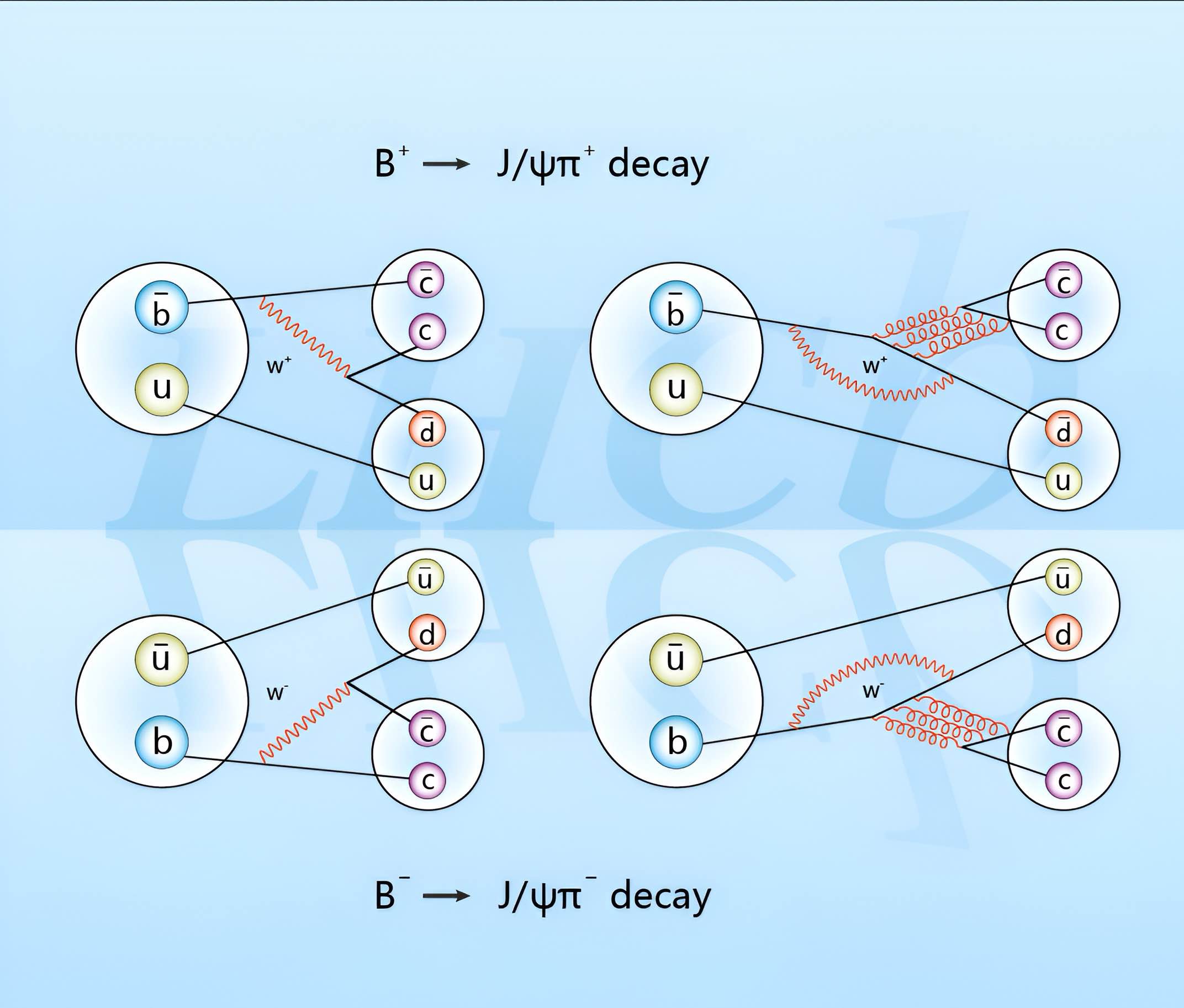 图1:正物质与反物质的底介子到粲偶素过程示意图