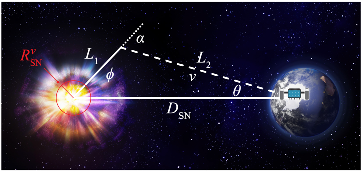 本研究聚焦于超新星爆发过程中中微子信号的精细时间结构,探索其中隐藏的超出标准模型的新物理信号。在超新星内部产生的新物理粒子在传播至地球的过程中可能衰变为中微子(见图1),从而使部分中微子信号相较于标准模型预测出现提前或延迟。这些具有特征性时间分布的中微子信号为检验各类新物理模型提供了可能。