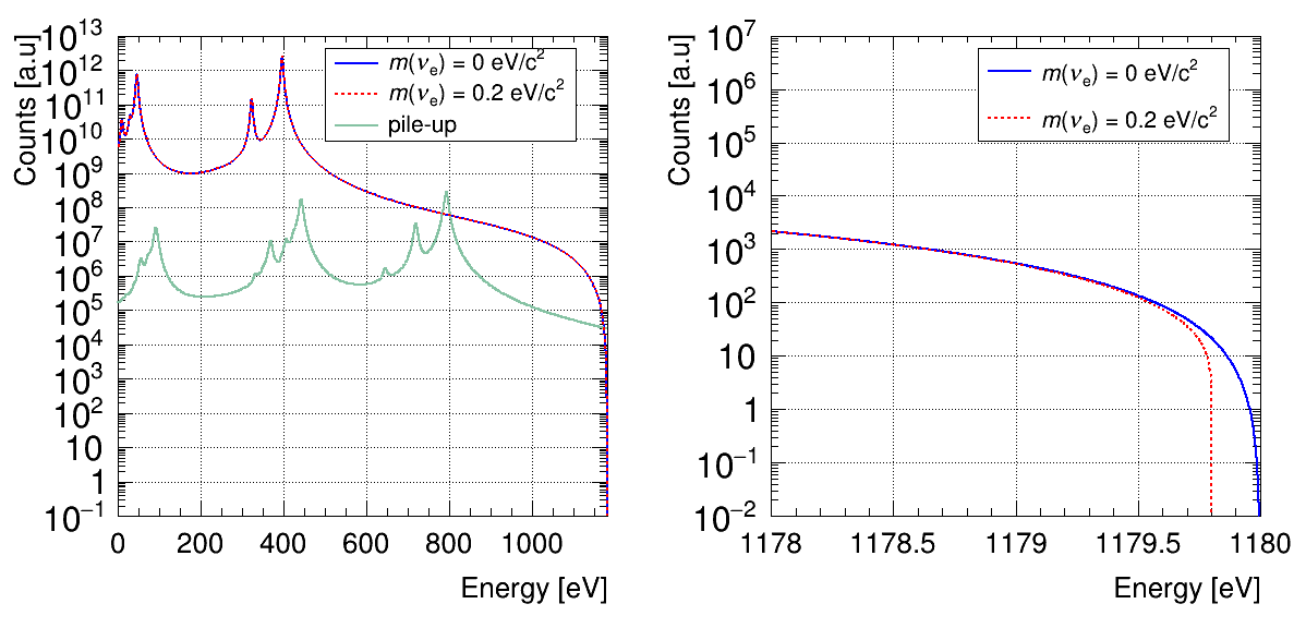 1:不同中微子质量下的镝-159轨道电子俘获能谱