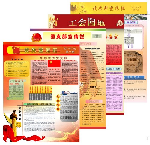 宣传栏是为职工提供最新的资讯信息窗口,是工厂宣传工作的阵地,是向职工宣传党的路线、方针、政策和宣传工厂各项政策、技术、项目的窗口。