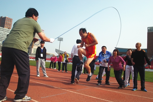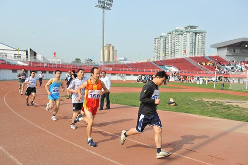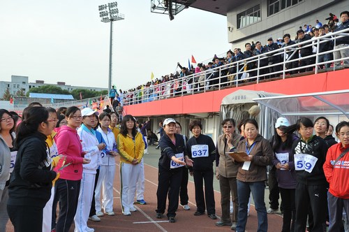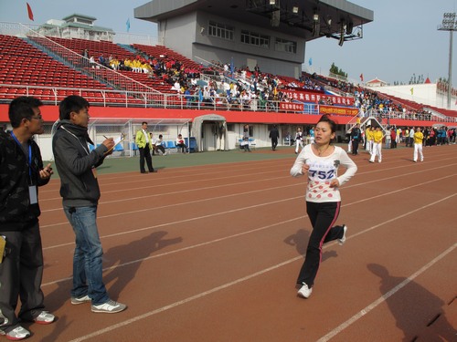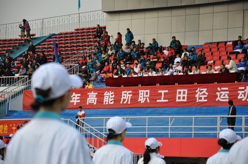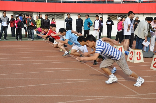 9点田径比赛正式开始,运动场上你追我赶,奋勇争先。运动员们摩拳擦掌、各显身手,顽强拼搏的精神体现的淋漓尽致;集体跳绳和团体接力进行得如火如荼,展示了各代表队默契合作的团队精神。比赛现场气氛紧张活泼,参赛队员和观众热情高涨,赛场上高潮迭起,扣人心弦。