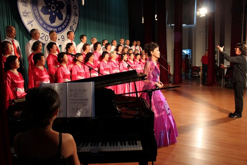 9月16日,离退办组织离退休老干部合唱团54人参加了中科院京区2013文艺年“中华魂颂歌献给党 报国志奋力奔小康”文艺汇演暨表彰大会。该活动是京区离退休干部2013文艺年的系列活动之一,由中科院离退休干部工作局主办,中国科学院大学离退办和高能所离退办协办。京区各单位离退休工作人员及离退休演出人员参加了大会。高能所选送的大合唱《旗帜颂》、《我的祖国》拉开了整场演出的序幕。