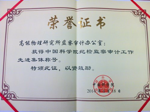 4月18日,中科院在京召开党风廉政建设与反腐败工作会议,白春礼院长等院领导到会作重要讲话。会议对在纪检监察审计工作中做出优异成绩的9个集体和20个优秀个人进行了表彰,高能所监察审计办公室被评为中科院纪检监察审计工作先进集体。