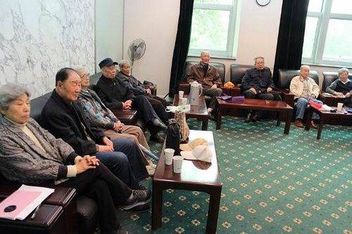 会议开始前,支部书记吴勉向大家介绍了目前离休支部的总体情况:共有41名党员,占离休总人数的74.5%,平均年龄86岁,其中90岁以上的高龄党员就有6位。由于离休老同志普遍年高体弱、行动不便,能聚在一起非常不易,原行政处“健康老人”邢智慧和“抗日老战士”郝云台都已是94岁高龄,也特地赶来;参会的十几位老人中还有住在所外的,也都准时到会,这些令在场的所有人员深受感动。