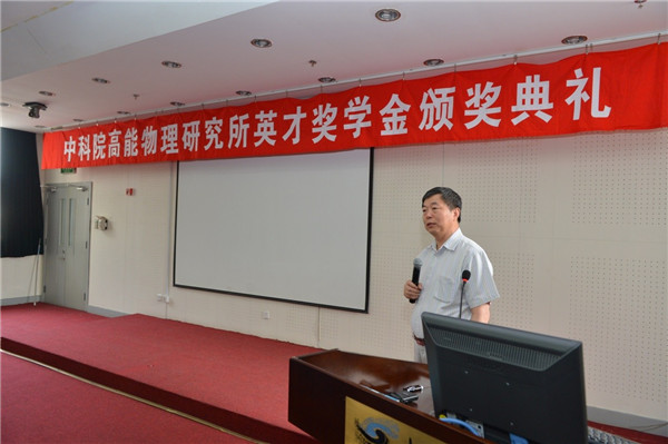 颁奖典礼上,陈刚副所长代表所领导致辞,对获奖的同学表示祝贺,年轻有朝气的学生让他想起在高能所读研时的情形。他指出高能所为大家的读研和科研创造了很好的条件,生活、工作及网络环境都很方便,欢迎大家通过此次机会了解高能所,感受科研的氛围,更希望大家来读研,投身高能物理事业。