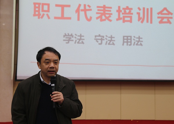 培训会特邀中国劳动关系学院劳动关系系副主任郑桥教授作了《劳动关系变化与工会改革》的报告,从改革、全球视角和当前面临改革的事业单位工作三方面进行了讲解。党委委员、职代会常委王铮讲了《工会法》,雷杰、束冠、王少哲分别讲授了《宪法》、《刑法》和《刑事诉讼法》。此外,学习之后还组织了法律知识测验。