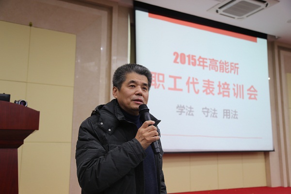 2015年12月30日至31日,中科院高能所工会在报告厅召开了职工代表培训会。本次培训会的主题是“学法·守法·用法”。来自全所的90多名代表参加了会议,所长王贻芳、党委书记潘卫民、党委副书记罗小安应邀出席了30日的开幕式。高能所工会主席陈宏刚主持30日的会议。