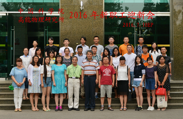 7月14日,中科院高能所举行了2016年新职工迎新会。党委书记、副所长潘卫民,副所长秦庆,高能所原副所长、老一辈高能人代表张闯,人力资源处处长郑文莉,加速器中心党总支书记、优秀青年职工代表岳军会出席了迎新会。会议由人力资源处副处长刘燕主持, 全所新职工20余人参加了会议,东莞分部视频参会。