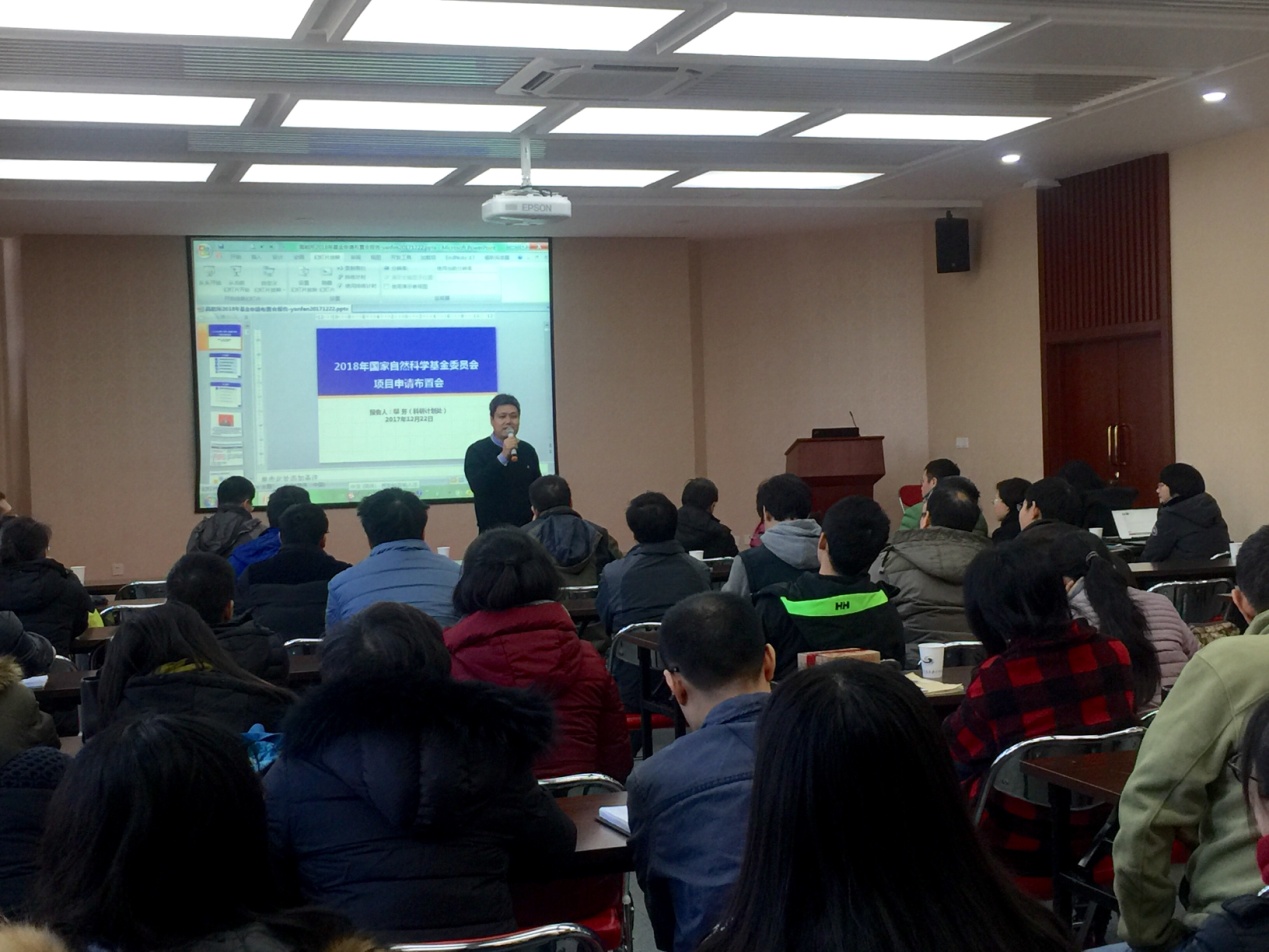12月22日,多学科中心召开2018年国家自然科学基金申请布置会,会议由多学科中心主任董宇辉主持,科研处徐殿斗副处长和鄢芬主讲,中心相关科研人员参加。