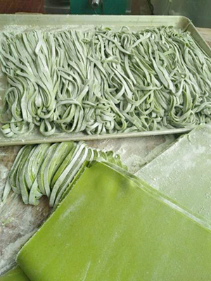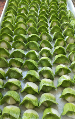 食堂制作的菠菜面和水饺