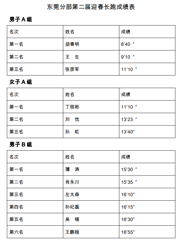 东莞分部举办第二届迎春长跑活动