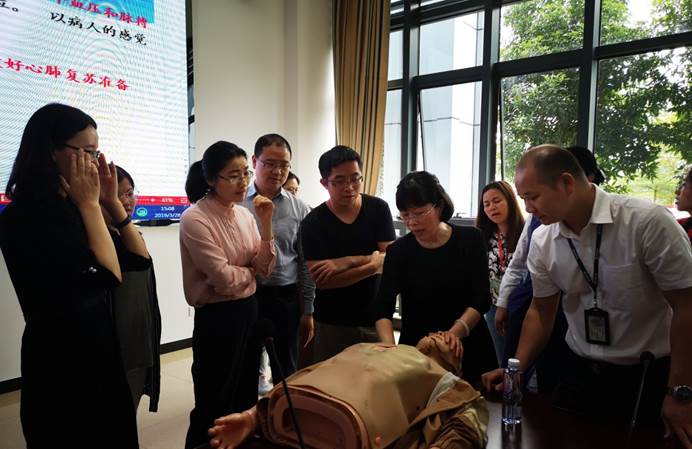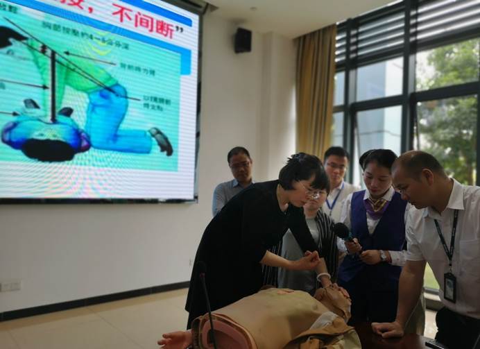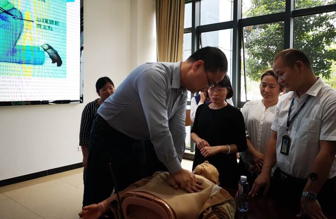 罗声香大夫首先介绍了急救情况判断和操作要领等知识,然后带领大家进行了心肺复苏的实际操作,并指导大家规范动作。讲解中,大家主动上前仔细观看,并在实际操作环节积极尝试,现场气氛十分活跃。最后,罗声香大夫针对大家提出的问题一一进行了解答。