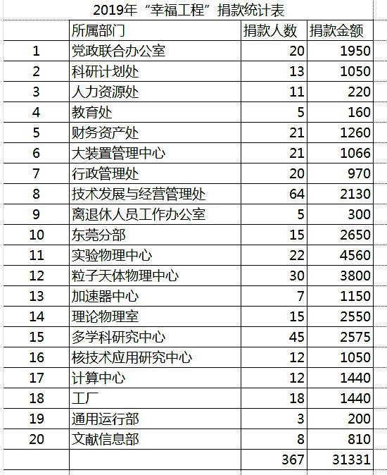 各部门捐款情况如下: