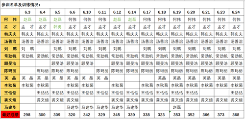 韩庆夫说:“既然接了任务,我们就要认真对待,努力训练,跳出自己最好的成绩!”从最初三分钟290个,一直到368的成长,他以对待科学的研究精神用表格详细记录着大家的进步与付出……