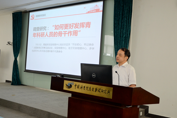 根据“不忘初心、牢记使命”主题教育的要求和高能所有关安排,8月12日上午,高能所所长王贻芳以《坚守初心、勇担使命》为主题,为实验物理中心、粒子天体中心、理论室、人力资源处、教育处的全体党员讲专题党课。实验物理中心党总支书记王铮主持党课。