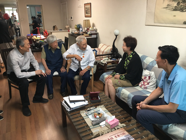 程红代表民盟北京市委向叶铭汉先生致以崇高的敬意,称赞他是民盟的楷模,感谢他为我国科技事业做出的重要贡献。叶铭汉先生精神矍铄,愉快地回忆起当年在清华、西南联大时候的往事,如数家珍一般谈到和他同时代的科学巨擘们如叶企孙、钱学森、王淦昌、邓稼先、钱三强等的轶事。当他说起钱学森在美国求学时参加的科研团队号称“自杀集团”时,现场的氛围更加活跃起来。程红夸赞叶铭汉先生记忆清晰,思维敏捷,难得有机会听到这么生动的科学大师们的往事。