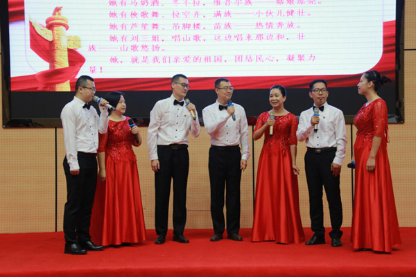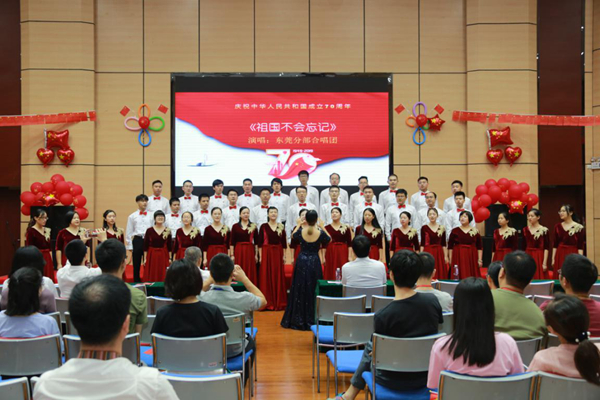 仪式结束后,全体职工、学生有序转移至多功能厅,观看国庆文艺汇演。
