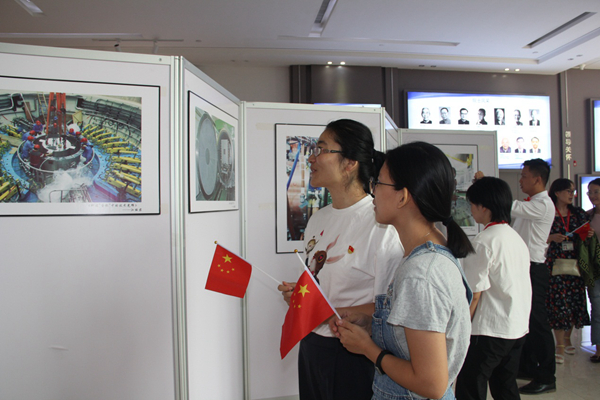 文艺汇演结束后,大家来到A1大厅,观看“我和我的祖国”摄影展。本次摄影展共展出43件作品,作品呈现了祖国山河的壮美,也记录了CSNS建设过程中的点点滴滴,反映了科技工作者对国家科技事业的奉献和对祖国的热爱,表达了大家对祖国70华诞的深深祝福。