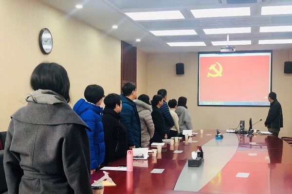 按照发展党员大会程序要求,党支部书记陈鹏宣布技经处党支部有表决权的正式党员半数以上到会,会议有效。与会人员全体起立,奏唱国际歌。