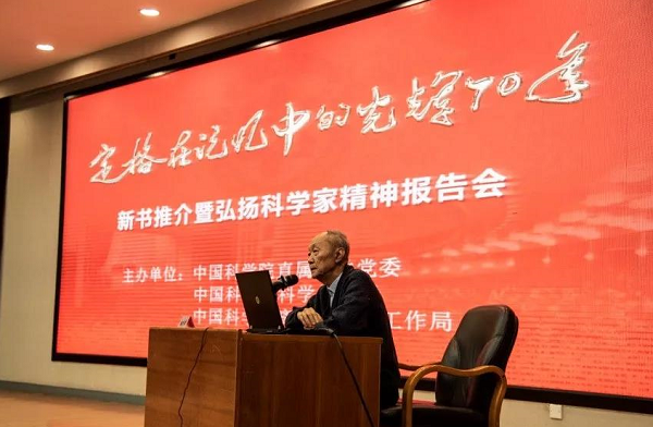 1210日,《定格在记忆中的光辉70年》新书推介暨弘扬科学家精神报告会在中科院文献中心举行,郑志鹏作为作者代表之一在报告会上发言,报告中,他讲述了赵忠尧先生等老一辈科学家无私奉献的精神和报国为民的情怀,并同其他几位作者代表一起向到会的青年代表赠送了新书,鼓励他们汲取老一辈科学家的精神力量,在实现中科院“四个率先”的新征程中勇当时代先锋。