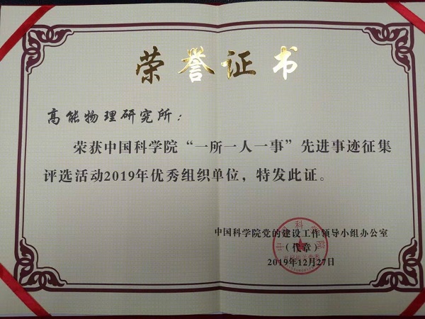 高能所荣获中科院“一人一所一事”先进事迹征集评选活动2019年优秀组织单位