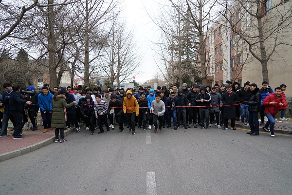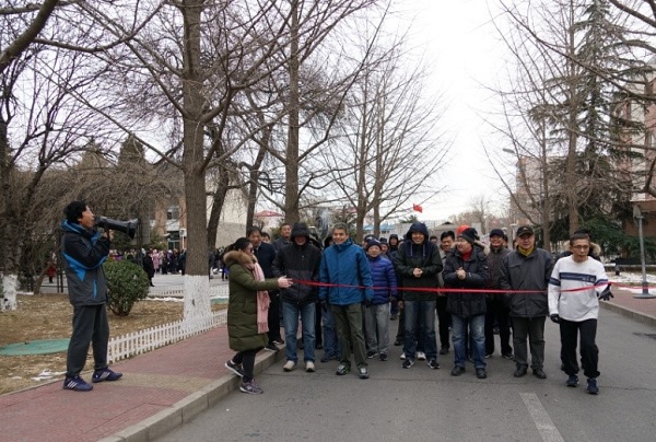 本次长跑比赛分两个阶段。上午9:00,近300名老同志齐聚所东门举行了退休老同志的“迎春健步走”活动。随后,近800名在职职工、学生组成了男女分甲、乙、丙六个组别,参加了比赛。所党委书记潘卫民发令,女子甲组率先冲出起跑线。其余各组别在所党委副书记罗小安、工会主席陈宏刚发令声中依次起跑。比赛持续了2个多小时,尽管气温在零下,但是比赛人员热情不减。