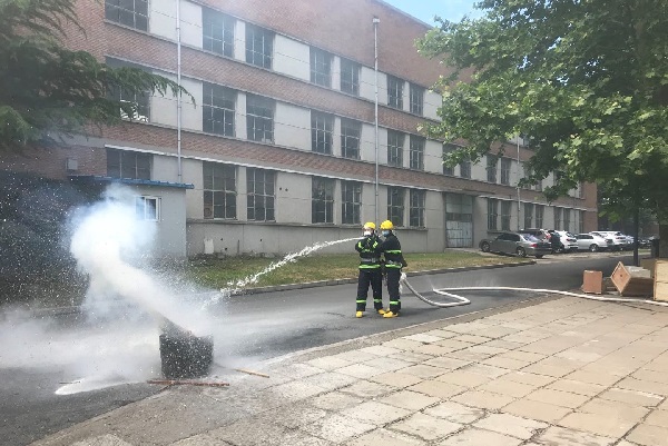 拉练自上午1000展开,本次拉练假定场景为:物资仓库木材堆放场突发火情,可能造成公共财产较大损失,情况十分危急。现场突发火情后,人员立即拨打5959向所安全中控值班室报告,同时按下了消防手动报警按钮。行政处安保办接到火情报警后,迅速将有关情况向所应急领导小组报告,并依据应急预案,指令微型消防站紧急出动,赶赴现场展开初期灭火处置。拉练结束后,现场拉演人员就本次拉练情况、预案完善和应急处置程序等进行了总结交流。