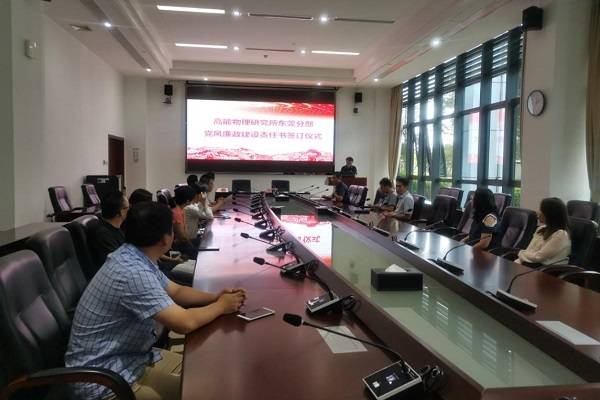 仪式上,高能所副所长陈延伟与分管的东莞分部各单位负责人签订党风廉政建设(或廉政建设)责任书