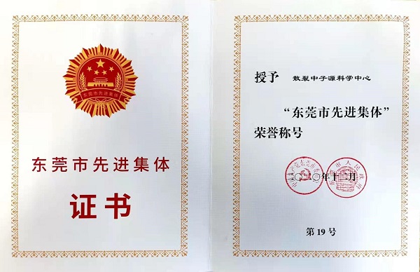 1225日,2020年广东省东莞市劳动模范先进工作者和先进集体表彰大会在东莞召开,中科院高能所东莞研究部副主任王生获“东莞市劳动模范”称号,散裂中子源科学中心获“东莞市先进集体”称号。