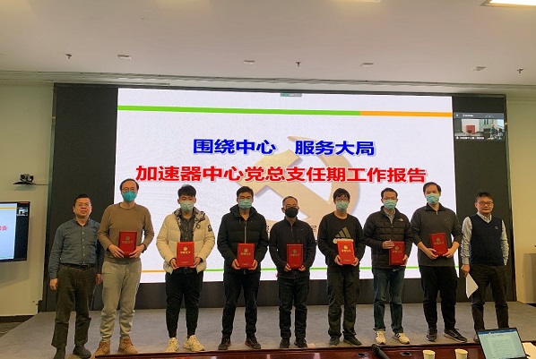会议还向2020度加速器中心优秀党员、优秀党务干部和优秀党支部进行颁奖。2020年度中,经各支部民主评议并经总支讨论通过,加速器中心党总支共评选了7名优秀党员,分别是常正则,刘劲东,段哲,杜垚垚,徐广磊,孙舒晨,陈思雨。3名优秀党务干部,分别是米正辉、麻惠洲、刘佳及1个优秀党支部——加速器中心第三党支部。