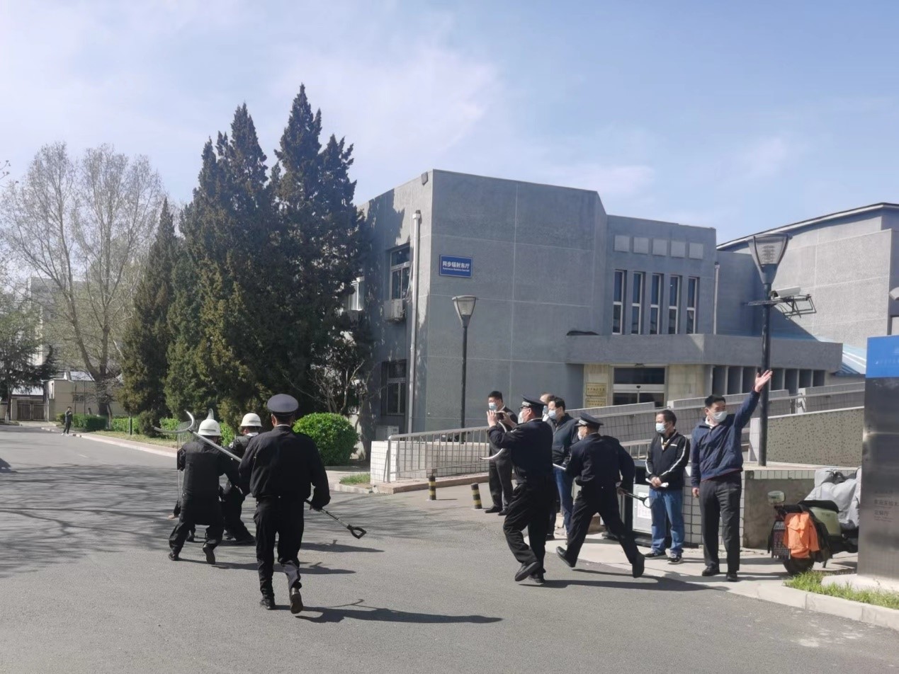 防暴演练,维护安全科研环境。为预防突发性恐怖袭击事件,增强我所职工学生的反恐防暴意识,提高整体应急防范能力,安保办针对疫情防控背景下可能遇到的突发事件开展演练,模拟了健康宝弹窗持械人员强闯园区的情形,应急处突队员各司其职、紧密协同、处置果断,圆满完成演练,达到预期效果。