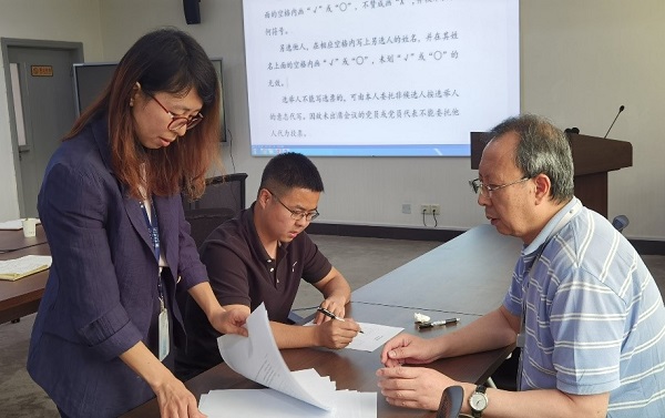 徐鹤做上届终党支部工作报告,她回顾和总结了支部三年来的各项工作,同时介绍了《高能所支委选举办法》及相关要求,支部成员全体举手表决通过选举办法有效,并举手通过了监票人、计票人和唱票人员分配。会议现场进行了无记名投票,选举产生新的支委。所纪委委员徐殿斗同志作为部门领导发言,他指出,要坚守做好党员底线,履行党员职责,他强调全处职工一言一行都要恪守职责。党办王华伟同志传达了所党委有关会议精神,并对新一届党支部提出了工作要求。