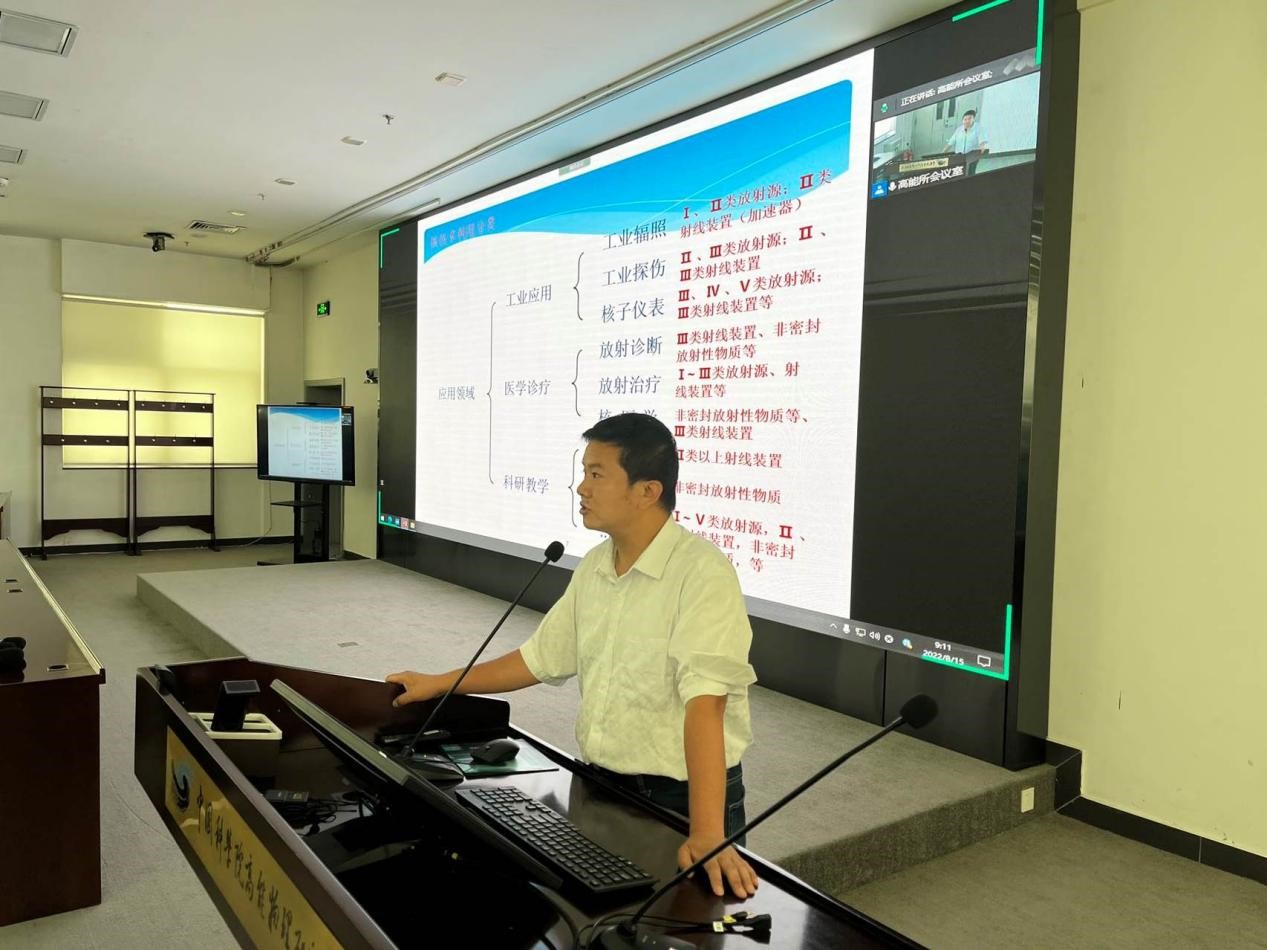 行政处副处长王庆斌主持开班仪式并讲话。他介绍了辐射安全与防护培训的基本要求和重要意义,勉励每位参训职工认真学习并通过考核取证上岗,同时通过本次培训了解辐射安全、学习和掌握辐射防护知识、不畏惧辐射工作、提高辐射安全意识、强化知法守法用法的法律意识,更好地保障我所科研、各项工程建设工作顺利实施。