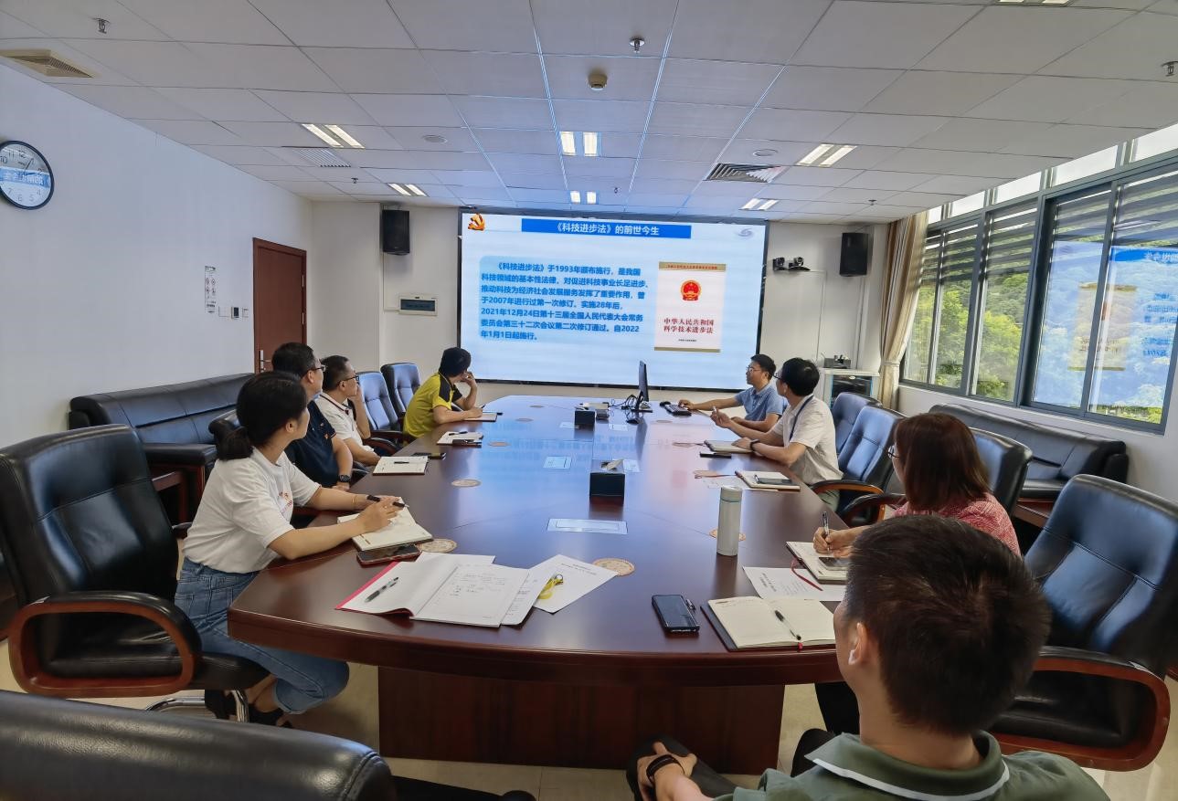 金大鹏带领与会人员集体学习了新修订的《中华人民共和国科学技术进步法》(以下简称《科技进步法》)等有关内容。通过学习,与会人员对国家加强基础研究能力建设、强化国家战略科技力量、推动关键核心技术攻关、加大科技人才培育等方面有了进一步的了解。