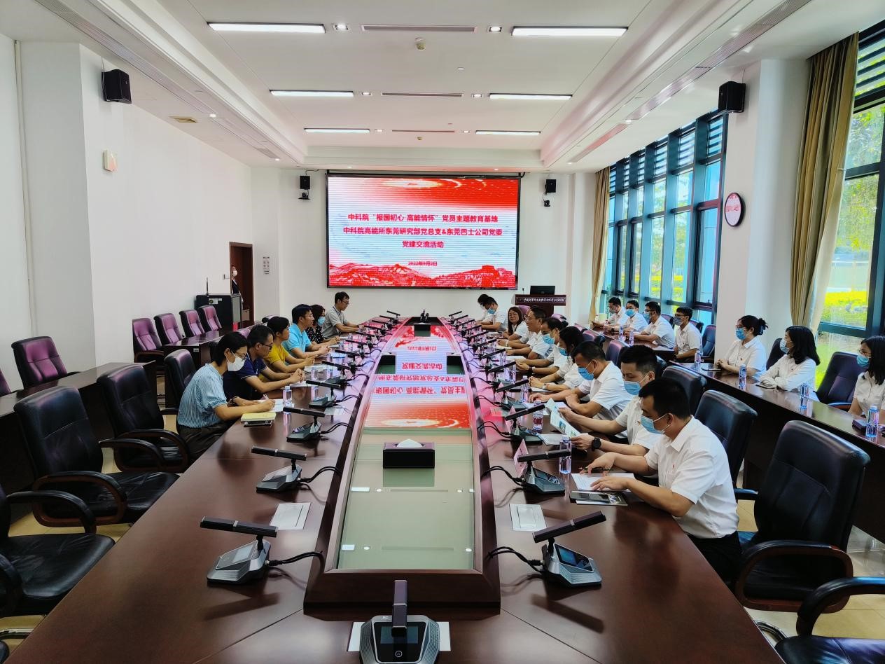 在党建交流座谈会上,东莞研究部副主任、党总支书记金大鹏对东莞巴士集团党委副书记、总经理刘全强一行的到访表示欢迎,对东莞巴士公司长期以来给予东莞研究部的支持和帮助表示感谢,并介绍了高能所所况及中国散裂中子源(CSNS)、“报国初心·高能情怀”党员主题教育基地的情况,希望双方今后能够继续加强交流,增进了解。刘全强在致辞中表示,希望通过此次共建活动,互相学习,推动彼此党建工作的发展。东莞巴士公司党委班子及有关同志,东莞研究部党总支有关同志及党政办、行政办的负责同志参加了座谈。