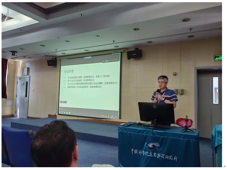 7月17日中午,实验物理中心党总支、工厂党支部联合举行主题教育党课学习活动,所党委委员王铮做“学习《论科技自立自强》”报告。