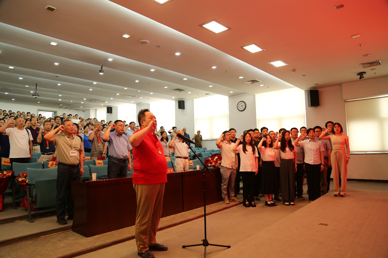 在“光荣在党五十年”纪念章颁发环节,李伟介绍了14位获本年度 “光荣在党五十年”纪念章的老党员,魏龙为9位到场的老党员颁发纪念章,副所长董宇辉向他们赠送了政治生日纪念卡,本年度新入党的党员同志为老党员们献上鲜花与祝福。会上,16名新党员进行了入党宣誓,“光荣在党五十年”老党员代表陈黎明领誓,在场全体党员一起重温了入党誓词,再次坚定“为共产主义奋斗终身”的理想与信念。