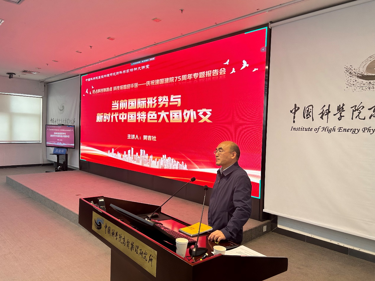 为庆祝新中国成立75周年、中国科学院建院75周年,纪念我国第一颗原子弹爆炸成功60周年,109日,高能所举办了 “抢占科技制高点 科技报国迎华诞” 专题报告会暨科学家精神大讲堂活动。中央党校(国家行政学院)国际战略研究院副院长樊吉社教授以《当前国际形势与新时代中国特色大国外交》为题作专题报告。专题报告会活动由高能所纪委书记李伟主持。