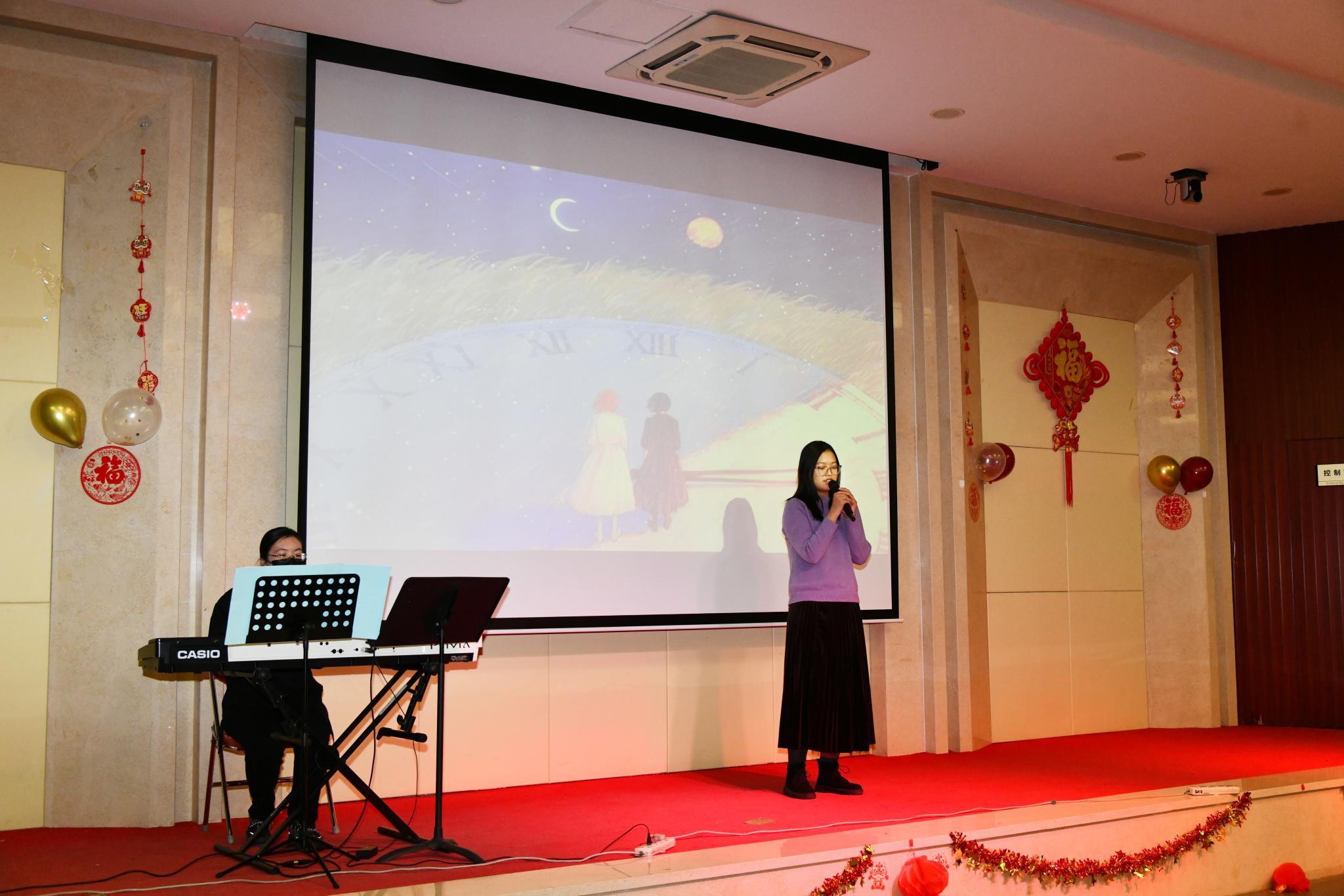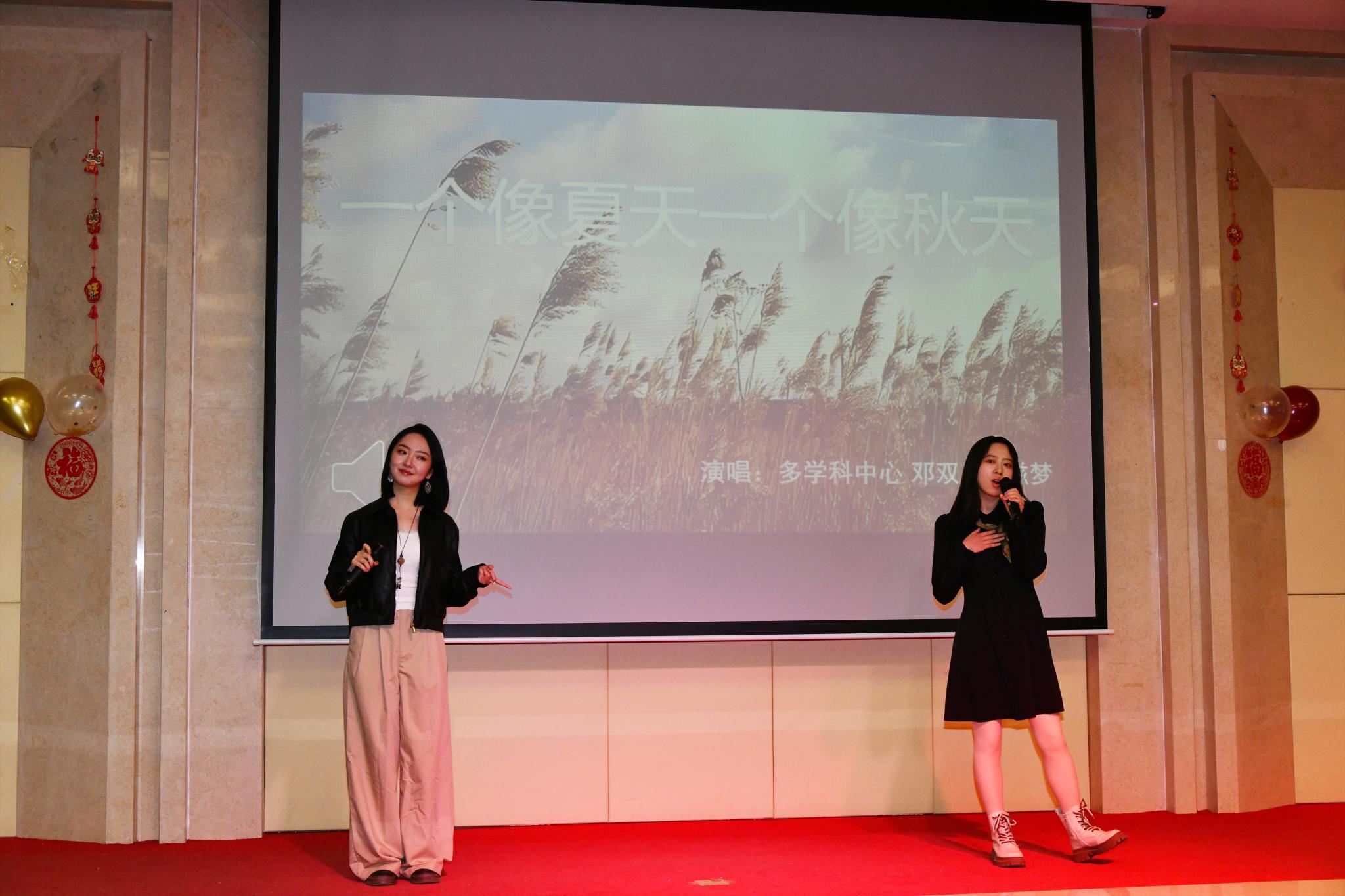 随后,2025年新年联欢会在鸿雁舞团《远古的呼唤》中拉开帷幕,绚丽的舞姿和激昂的音乐吸引了观众的目光。在《一个像夏天一个像秋天》节目中,观众不禁随之合唱,重温关于友情的美好回忆。快板表演《三打白骨精》用极强的技巧及生动的表演带观众再次走近充满奇幻色彩的西游世界。整场晚会包含了丰富多彩的歌曲、舞蹈、语言以及演奏类节目,游戏环节与抽奖互动的穿插带来意外的惊喜,令现场观众的热情高涨,气氛愈加热烈。最后,晚会在经典曲目《乌兰巴托的夜》中圆满落下帷幕,所有参与者共同登台,表达对新一年的美好祝愿。此次新年联欢会不仅展现了研究生丰富的文艺才能以及团结奋进的精神风貌,也寄托了师生们对2025年的美好期许与祝福。在新的一年里,全所师生将怀揣着对未来的美好憧憬,共同为科研事业的辉煌成就而不懈奋斗。