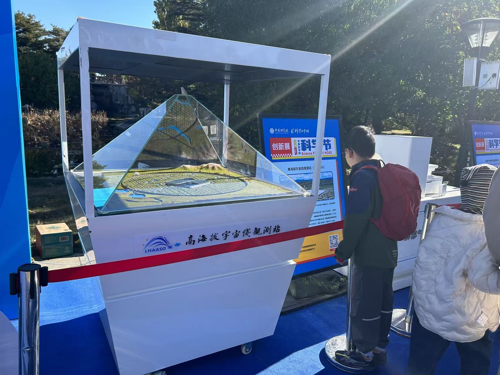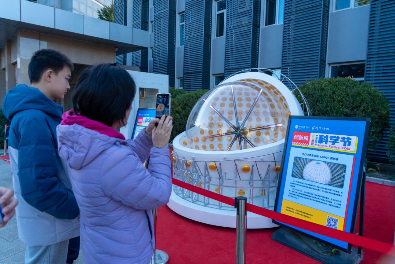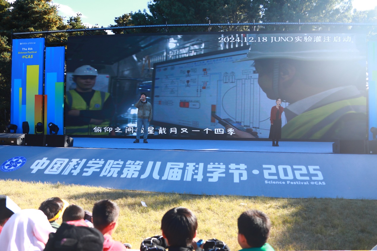 中国科学院第八届科学节(2025)北京主场活动于111日至2日在中国科学院植物研究所(国家植物园南园)举行。江门中微子团队在活动现场演唱歌曲《别叫我幽灵》,代表高能所研究成果的江门中微子实验模型、高海拔宇宙线观测站沙盘、爱因斯坦探针卫星模型参加了本次展览;高能同步辐射光源图片、高海拔宇宙线观测站图片、江门中微子实验图片在“科学之美”展板进行了展示。