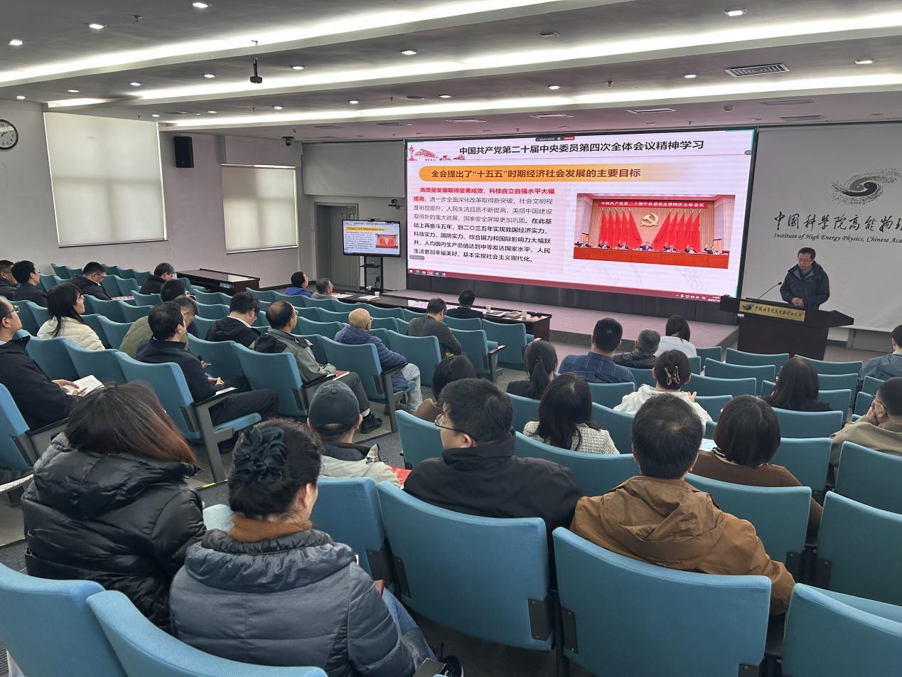 会议严格落实“第一议题”制度,集体学习了中国共产党第二十届中央委员会第四次全体会议精神。王生同志作专题辅导报告,围绕全会精神的核心要义、《中共中央关于制定国民经济和社会发展第十五个五年规划的建议》主要内容、侯建国院长就学习贯彻全会精神提出的具体要求,以及高能所“十五五”发展规划目标等内容进行了系统解读。他强调,要把学习贯彻全会精神作为当前和今后一个时期的重大政治任务,切实把思想和行动统一到党中央和院党组决策部署上来,高质量推进研究所“十五五”规划编制工作,持续发挥党建引领作用,确保“十四五”圆满收官。