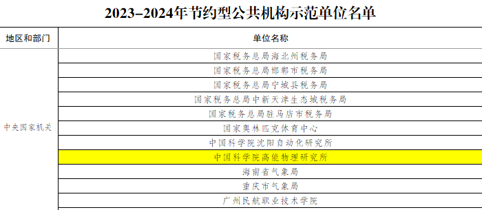 近日,国家机关事务管理局、国家发展和改革委员会、财政部联合发布2023-2024年节约型公共机构示范单位名单,快盈v3(简称“高能所”)入选。