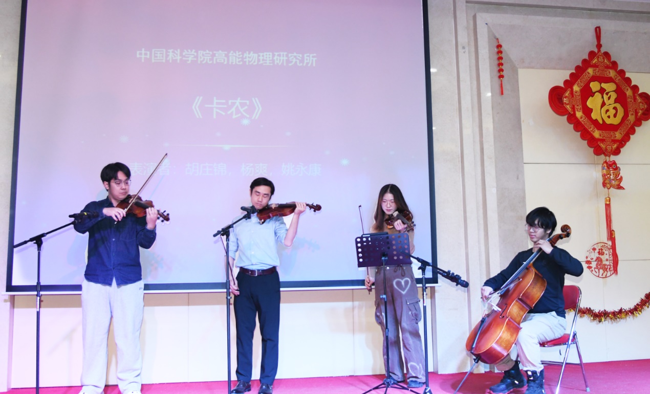 颁奖典礼环节结束后,2026新年联欢会精彩上演。暖场乐队拉开序幕后,联欢会分 “忆往昔”、“绽今朝”、“赴未来”三篇章。国科大博士合唱团的《如愿》《好日子》传递温情,团体舞《ZOO》活力满溢,钢琴弹唱《这世界那么多人》轻诉共鸣,小品《答辩不差钱》以科研生活为底色,诙谐演绎引得全场欢笑;乐队联唱、器乐独奏与古典舞《美人关后是红马》交织,吉他弹唱串烧更添文艺氛围;《卡农》合奏、粤语独唱与街舞《NEON》轮番登场,最终以《新年快乐》欢乐收尾,期间穿插游戏互动与抽奖环节,现场氛围热烈。本次联欢会展现了高能所学子团结活泼、昂扬向上的精神风貌。在新的一年,全体师生将携手并肩,以更加饱满的热情和坚定的信念,迎接挑战,共创佳绩。