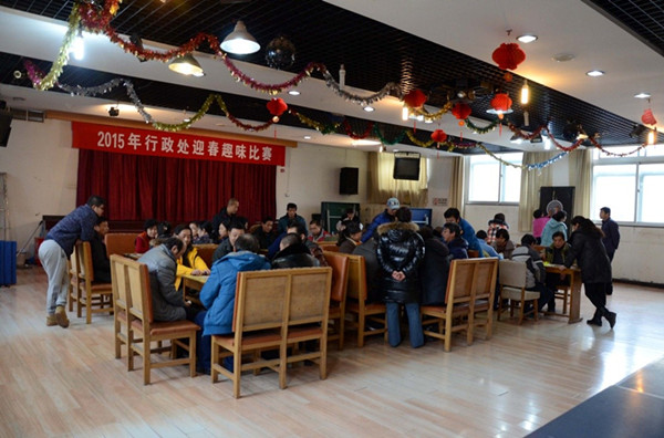 为丰富行政处职工的业余文化生活,提升团队凝聚力,201515日中午行政处利用休息时间在高能所工会俱乐部举行了迎春趣味比赛。比赛项目包括跳棋、飞镖和敲三家等三项大家参与度高的娱乐项目。