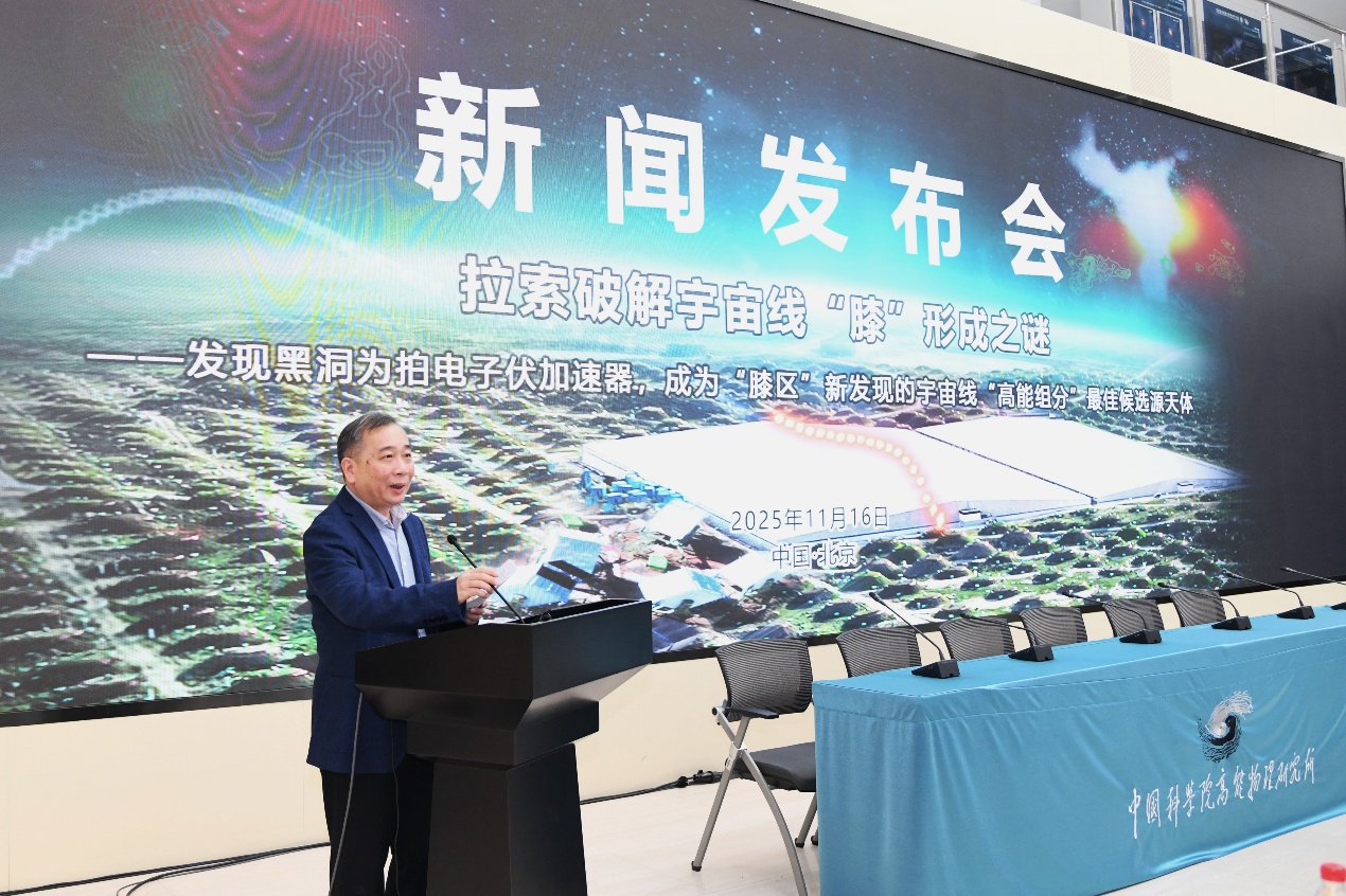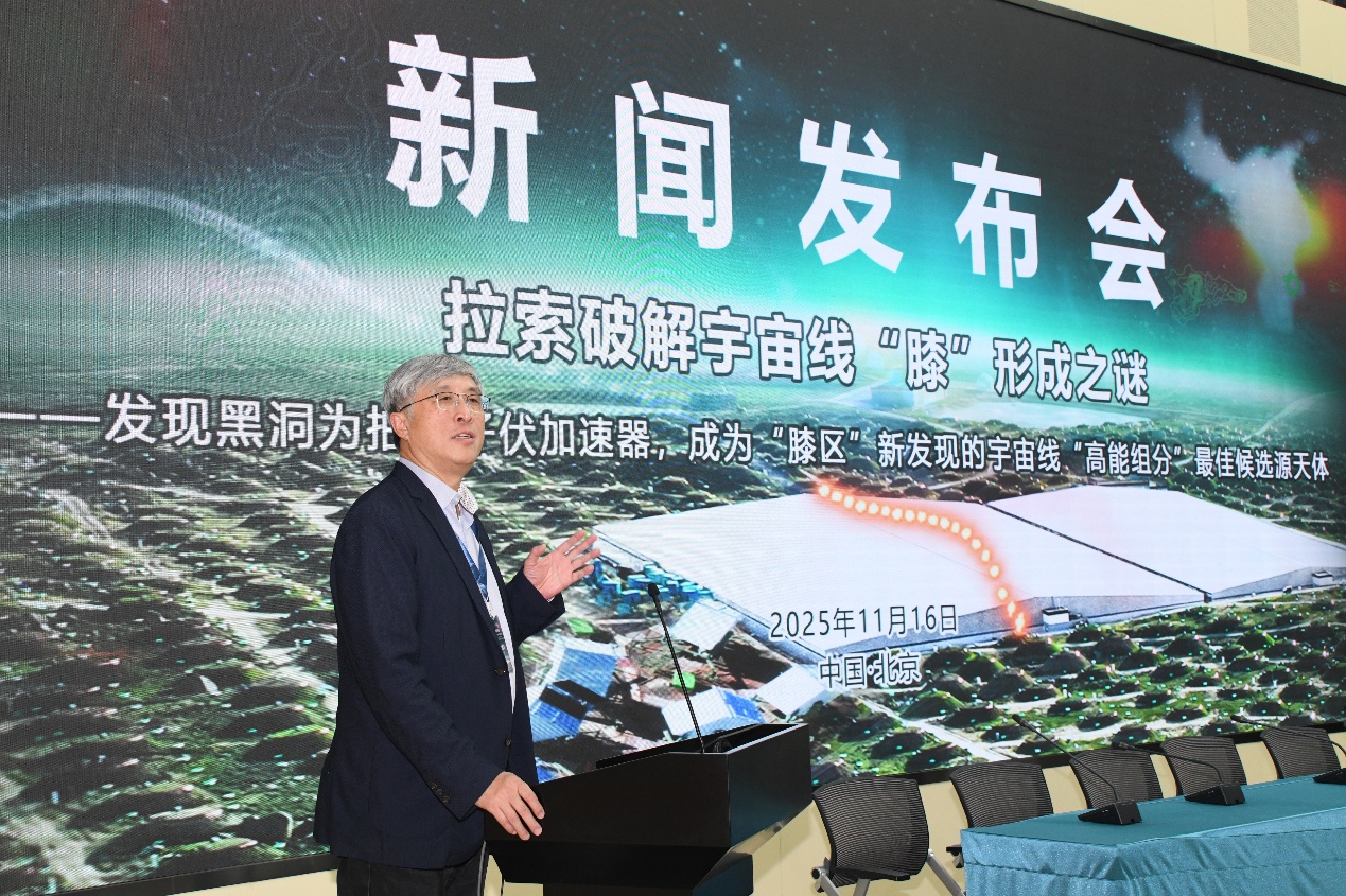 11月16日,“拉索破解宇宙线‘膝’形成之谜”成果新闻发布会在北京快盈v3召开,发布高海拔宇宙线观测站(LHAASO,拉索)两项具有里程碑意义的科学成果,分别发表于《National Science Review》与《Science Bulletin》,由快盈v3、南京大学、中国科学技术大学、罗马第一大学等机构完成。观测发现:1)黑洞吸积驱动的微类星体是银河系中强大的粒子加速器,能够将质子加速至拍电子伏(PeV)能段;2)宇宙线质子能谱“膝区”显现超出预期的高能组分,黑洞正是其最可能的候选源天体。这一发现不仅揭示了宇宙线起源的关键机制,也为理解黑洞系统的极端物理过程开辟了一条新途径。